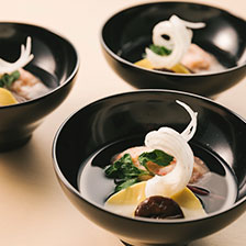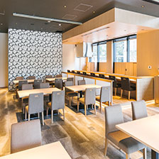 木目を基調としたシックな空間で旬の食材にこだわり、技術と創意を尽くしたお食事をご提供致します。