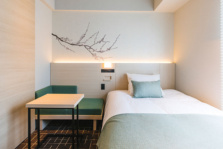 素材を生かした色調をベースに、壁一面に日本の風情と