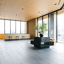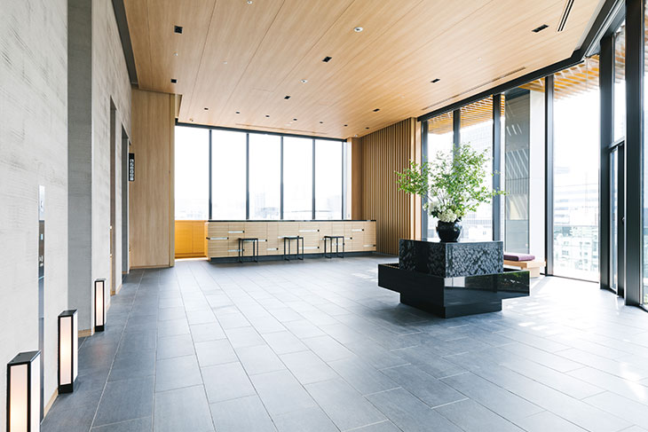 最上階のフロントロビーでは、景色の良い開放感あふれる